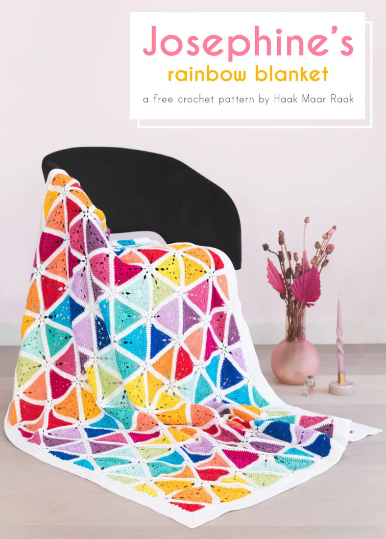 19.Dec.22 / Kirsten BalleringJosephine’s rainbow blanket is an explosion of colour! The cheerful triangles make for a stunning palette to work with. The motifs can be made in advance, or joined as you go. It’s up to you!