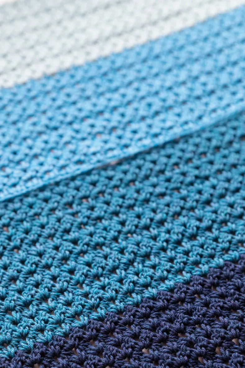 Ik gebruik een puffy (dikkere) V-steek voor dit ontwerp. Deze steek, gecombineerd met de wol van de Metropolis die ik hiervoor gebruik zorgt voor een dik en warm stofje wat goed isoleert. Bovendien haakt de steek lekker rythmisch weg, perfect voor TV-haken. Ik had nog wat shows in te halen, en waarom niet het nuttige met het aangename verenigen?