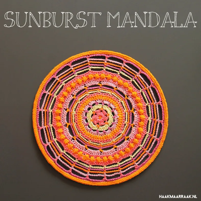 01.Jul.19 / Kirsten BalleringBen je klaar om een beetje zonneschijn in je huis te brengen met de Sunburst mandala? Ik liet me inspireren door de Mandala challenge van Simy’s studio en heb deze zonnige mandala ontworpen. De mandala wordt gemaakt met 6 kleuren Scheepjes Catona. Het patroon is geschikt voor beginners.