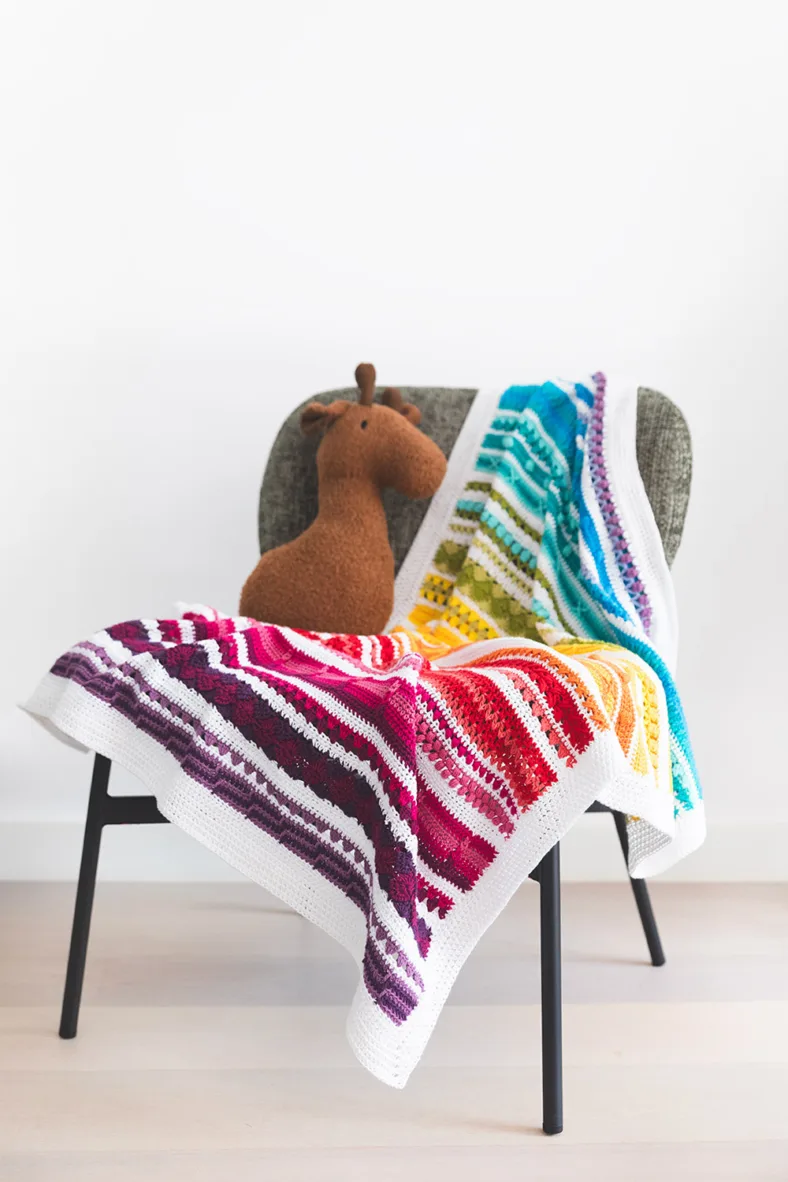 18.Jul.24 / Kirsten BalleringDe Baby Regenboog Sampler Deken 2 is een kleinere versie van de grote Regenboog Sampler Deken 2. Je vind in dat patroon alle verschillende steken uit de originele deken, maar dan gewoon op babyformaat! Het is een mooi project voor een avontuurlijke beginner die kennis wil maken met meer steken, met een prachtige deken als eindresultaat. Dit patroon is een reis op zichzelf!
