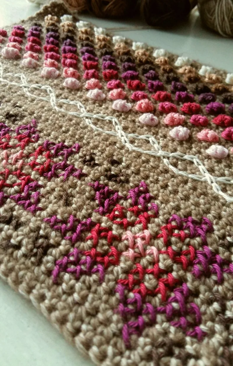 Sylvia heeft haar eigen garen gebruikt voor de Hygge CAL. Ik vind haar kleine aanpassing aan de separatorrij en de pareltjes die ze mee heeft geborduurd in het midden van de bloemetjes heel goed gevonden! Kleine wijzigingen zoals deze helpen een patroon je helemaal ‘eigen’ te maken!