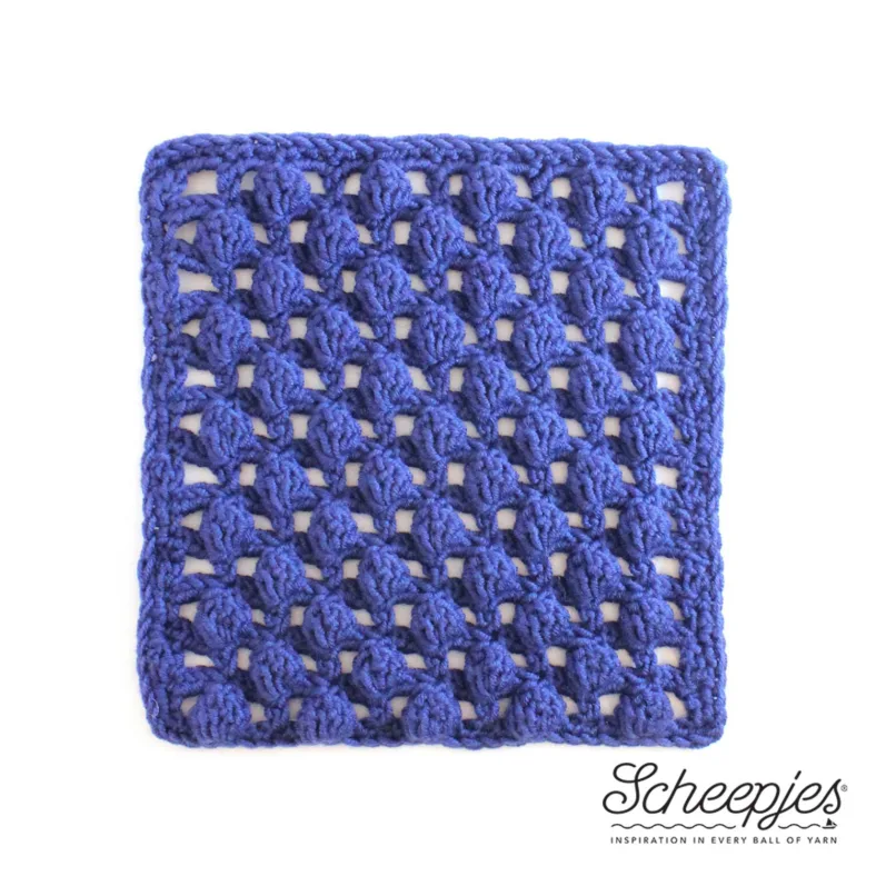 We zijn alweer in week 11, wat gaat het hard! We zijn al bijna klaar met het maken van de vierkantjes. Jammer, want ik vind het wel leuk om de stapel te zien groeien! Het vierkantje van deze week is ontworpen door Annelies Baes van Vicarno.com. Je kent haar vast van de 2015 Scheepjes CAL ‘Flight of Fancy’, waar ze een prachtige sjaal heeft ontworpen. Dit vierkantje is een mix van een raster en bobbels, en haakt vrij snel! Je krijgt de slag dan ook vrij snel te pakken. Annelies heeft ook een blogpost over haar motief geschreven. Diezelfde blogpost bevat een krachtige boodschap over hoe Social Media een designer kan beïnvloeden. Wat mij betreft zeker het lezen waard!