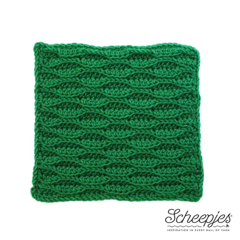 Dit is het laatste patroon voor de deken! Na deze week hebben we nog 2 weken te gaan met het aan elkaar maken van de lapjes en het omranden, en daarna is de deken af! Het vierkantje van deze week is ontworpen door Tammy van Canadutch. Ze is voornamelijk een breister (heb je haar prachtige Mira Shawl al gezien?) maar zo nu en dan ontwerpt ze ook haakpatronen. Ze heeft een mooie blogpost over haar motiefje geschreven, die je hier kan vinden. Ik vond het een heerlijk vierkantje. Zo rustig en rhythmisch! Ik had de steek ook nog nooit eerder gebruikt, dus dat is altijd spannend.