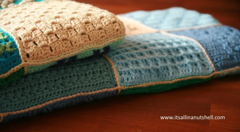 Het is nu tijd voor een van de meest bevredigende onderdelen van de CAL: het aan elkaar zetten! Zoals veel van jullie vast wel weten hebben wij dit design voor Marinke afgemaakt. Maar een van de onderdelen die ze volledig afgemaakt heeft is de join! Ze heeft de zogenaamde ‘vlakke rits’ methode gebruikt. Hiermee maak je een platte verbinding die tussen de vierkantjes ligt in plaats van een duidelijk opstaande rand zoals andere methodes soms doen. Het ziet er nu mooi uit, maar wacht maar totdat je straks de rand gemaakt hebt! Deze week was het Esther’s beurt om een mooie blogpost over deze methode te schrijven, en die kan je hier vinden. Vind je haar versie van de deken niet prachtig? Ik zeker!