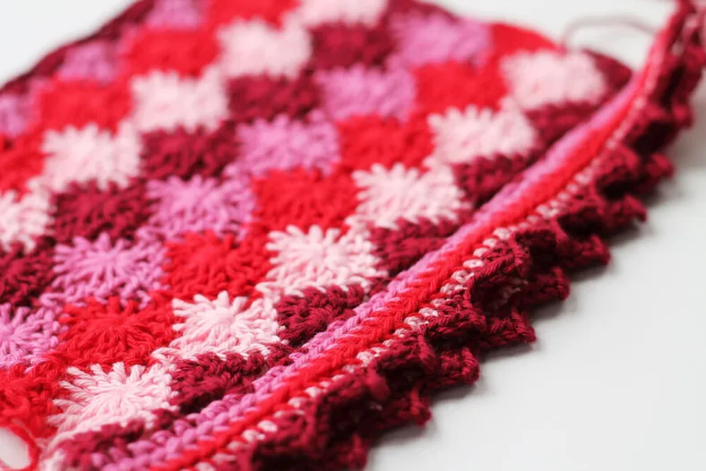 I still love how the colours of the Cotton 8 from Scheepjes work together. And as you can see, I worked a double edging. The specifics will come in a later post, but it's pretty simple to make. As the stitches are not blocked yet, the spikes seem to be behind each other. But I'm confident that after blocking they will look a little bit more elegant and a little less bulky.