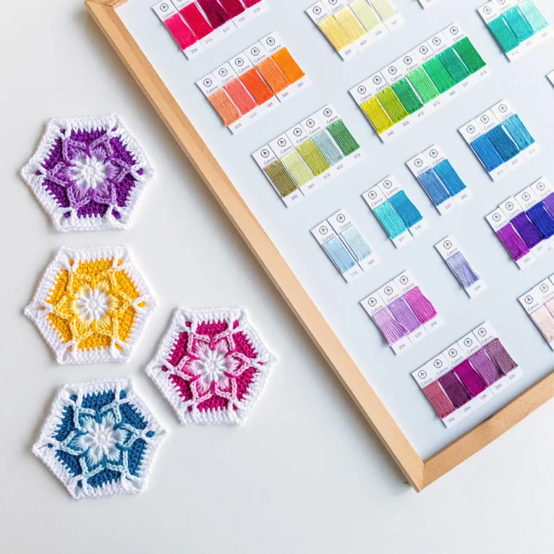 When I made these sample motifs for the workshop, I picked scrap colours. I knew there and then that I was going to make this motif into a blanket. However, for a big project, I had to work more methodically.