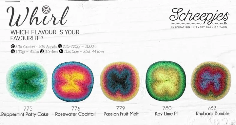Ok, I’m in trouble now! I have more than enough yarn to crochet until the end of my days. But, Scheepjes has just released 5 new colours of their Whirl yarn… And of course, I need to have one (or more)!