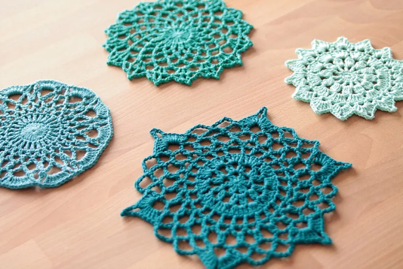 If you missed it, I’m using Cotton 8 from Scheepjes for this project. Cotton can withstand a lot of ‘abuse’, which comes in handy because I want the mandala’s to be stiff as a board! They’re a little bit drooping right now…